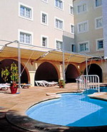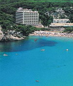 A large modern hotel situated in the quiet Cala'n Fort bay, next door to shops, bars and restaurants, and 50 metres from the beach. Guests can enjoy a refreshing dip in the outdoor pool, soak up the sun on a sun bed by the beach, or sip a drink from the poolside bar.  An array of water sports is on offer, and kids will enjoy the mini club and children's pool.  Guests can also enjoy a work out in the gym or a pampering visit to the hair and beauty salon.  Guests can choose from a variety of sporting activities; there is a biking centre, diving centre, hiking centre and canoeing centre. Guests can also play ping-pong, rifle shoot, or play volleyball and water polo.  The hotel's main restaurant is open for themed buffet dinners and the Snack & Pool Bar serves light lunches and snacks.